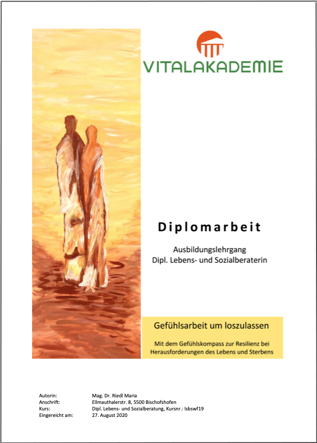 Meine Diplomarbeit, wie könnte dies anders sein, behandelte das Thema „Gefühlsarbeit in der Begleitung alter Menschen.“ Mein Ziel der Arbeit war, den Beruf Gesundheits- und Krankenpflege mit Mentaltraining zu verbinden. Der theoretische Background bestand aus der Gegenüberstellung des Begriffes Ressourcen in Gesundheits- und Krankenpflege und Ressourcen im Mentaltraining.